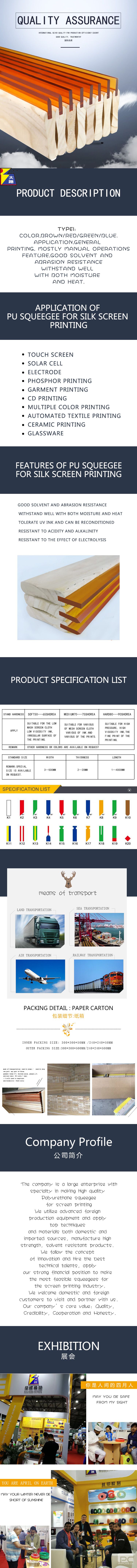 2.the medium hardness squeegee is used for high pressure.Suitable for various of mesh screen cloth,various of ink and various of the prints use this kind of squeegee the printing ink accumulate very well.Image resolution power is good,suitable for all kinds of printed substrates.